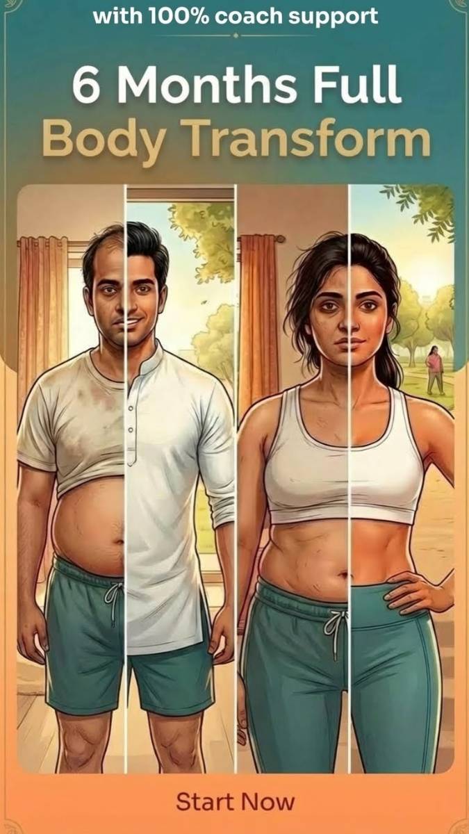 A comprehensive 6-month journey covering personalised easy diet, home workouts, and habits for sustainable natural weight loss, clearer skin, stronger hair and better health.